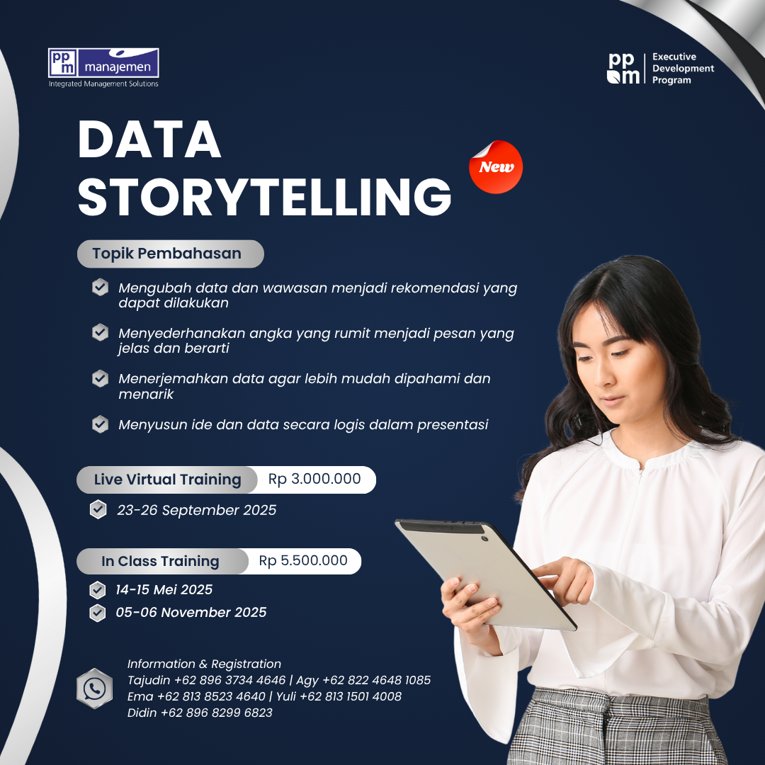 Data Anda hanya memiliki nilai jika dapat membantu orang membuat keputusan penting dan mengambil tindakan. Data storytelling merupakan teknik penyampaian informasi yang menggunakan data untuk menceritakan sebuah cerita atau narasi. Data storytelling yang disampaikan dengan baik dapat menjadi pendorong perubahan positif dalam organisasi modern. Pendekatan ini mengubah data mentah menjadi format yang jelas, ringkas, dan menarik secara visual, seperti bagan, grafik, dan dasbor, sehingga mendukung pengambilan keputusan dan perencanaan strategis yang lebih baik.