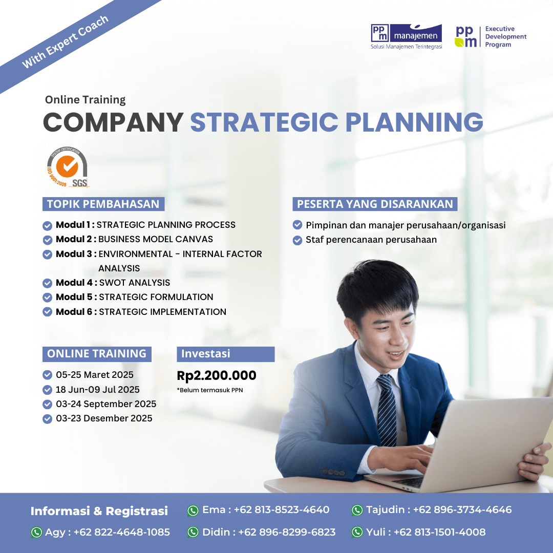 Program pengembangan eksekutif Perencanaan Strategik ditujukan untuk membantu pimpinan dan manajer menyusun perencanaan strategik perusahaan.