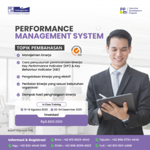 Performance Management System (PMS) mencoba memberikan gambaran bagaimana sesungguhnya implementasi sebuah sistem yang fokus pada pengelolaan kinerja di perusahaan dijalankan. Secara filosofis, PMS dapat menjadi sebuah alat untuk membentuk budaya dan iklim kerja organisasi sesuai yang diharapkan organisasi. Secara strategis, implementasi PMS juga akan menjawab bagaimana kinerja individu sesungguhnya sangat mencerminkan kinerja organisasi, oleh karena itu perlu dipikirkan dengan matang, target dan sasaran kinerja individu yang mencerminkan sasaran organisasi. Dengan metode pembelajaran yang interaktif, topik ini akan memberikan pengalaman belajar yang mendalam dan bermanfaat.