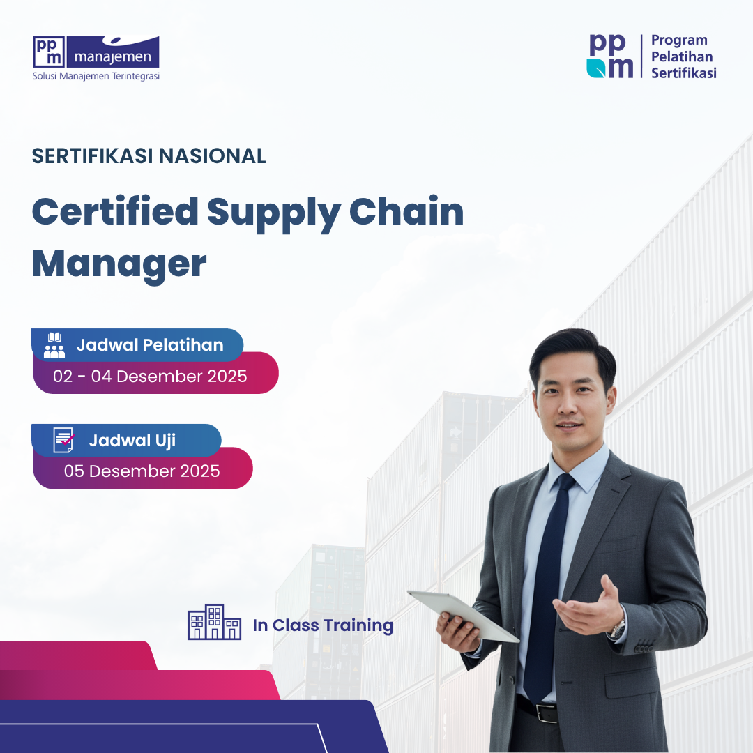 Kemampuan manajemen Supply Chain yang unggul menjadi kunci keberhasilan operasional dan ketahanan bisnis. Organisasi memerlukan manajer Supply Chain yang kompeten untuk mengelola efisiensi, kualitas, dan ketahanan rantai pasok. Keberadaan Certified Supply Chain Manager (CSCM) memberikan solusi untuk meningkatkan kualifikasi dan keterampilan para profesional dalam mengelola Supply Chain secara efektif.